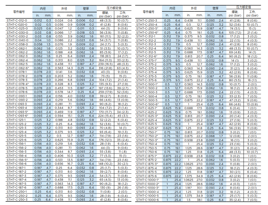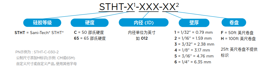 Sani-Tech® STHT®-C and Sani-Tech® STHT®-65 软管标准尺寸 -