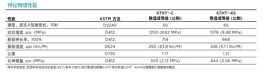 • 可提供两种硬度,50和65邵氏硬度