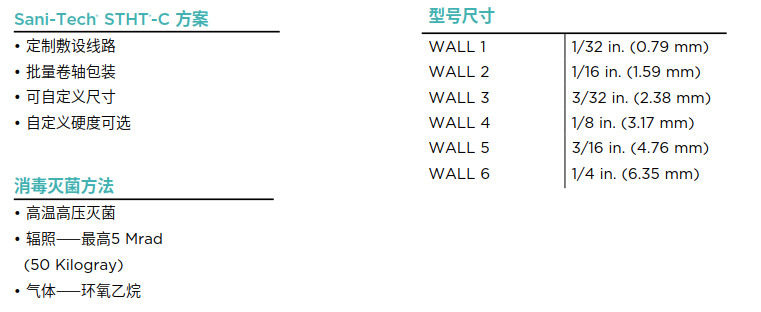 • 符合USP VI类, EP 3.1.9 和 ISO 10993规范要求